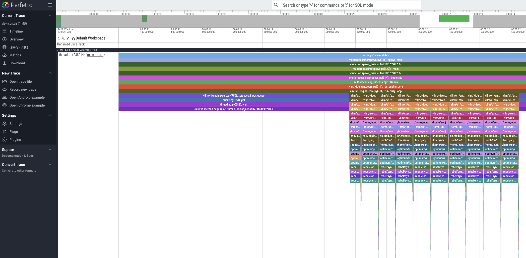 The generated profiling trace files can be visualized using the Perfetto UI.