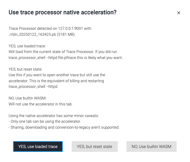 큰 트레이스(trace) 파일을 처리하기 위한 더 자세한 정보는 Perfetto 공식 문서에서 확인하시기 바랍니다.