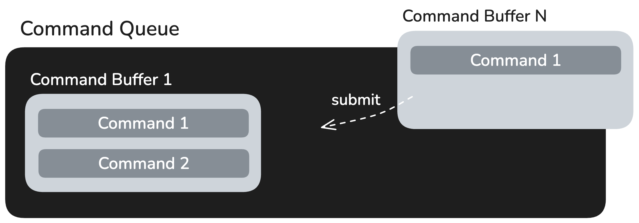Command Submission: The runtime submits the pre-constructed command buffers to the command queue for execution.